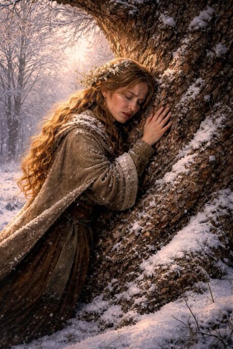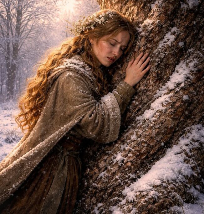 Wybiegli przed chyżę, by odnaleźć dobrodzieja. Ledwo widoczne ślady prowadziły pod las, wprost do starego buka. Rozalia mocno objęła drzewo, a po korze popłynęły gorące łzy.