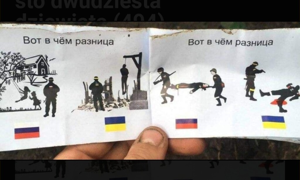 Na fotce wprowadzającej fragment propagadowej broszurki znalezionej w moskiewskich okopach.