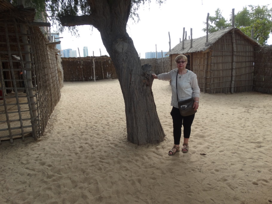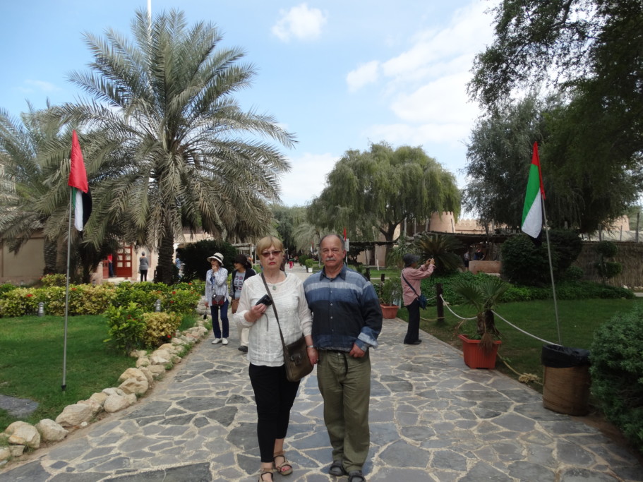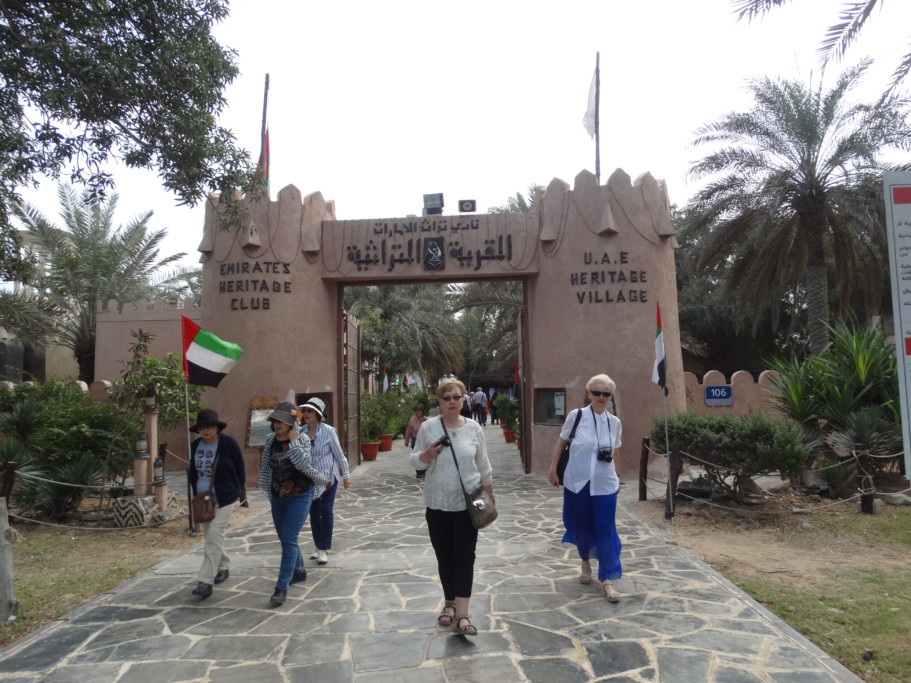 Po wyjściu nareszcie można był zdjąć uciążliwe chusty z głów i poczuć się swobodnie, tym bardziej, że upał zaczynał dawać się we znaki. Z wielką więc radością przyjęliśmy informację, iż za chwilę udamy się nad Zatokę Perską, gdzie będziemy zwiedzać Sultan Bin Zayed Haeritage-kompleks, który obejmuje skansen, muzeum, oraz będziemy chwilę odpoczywać nad wodą Zatoki Perskiej.