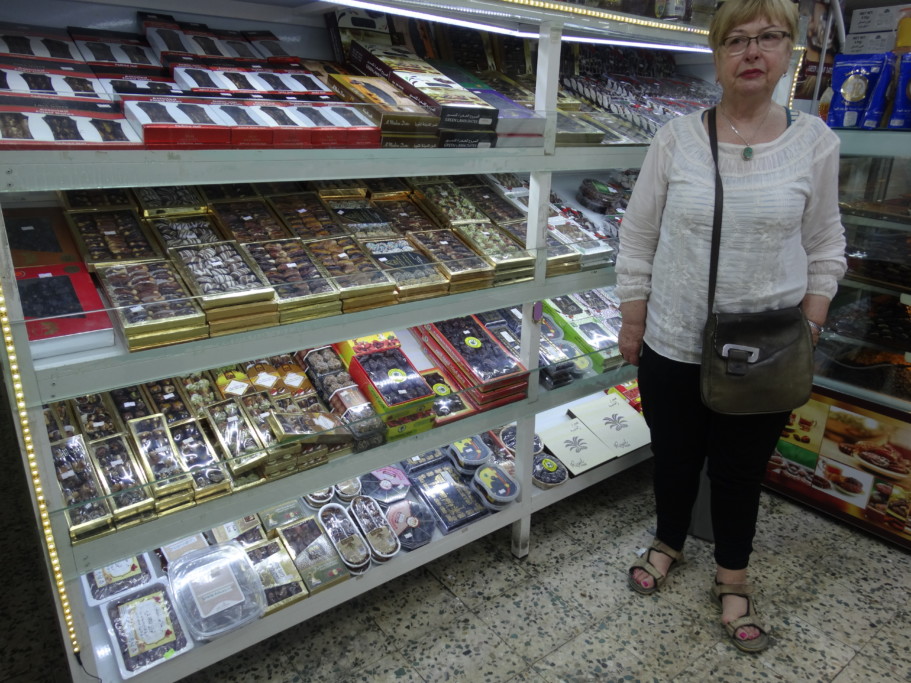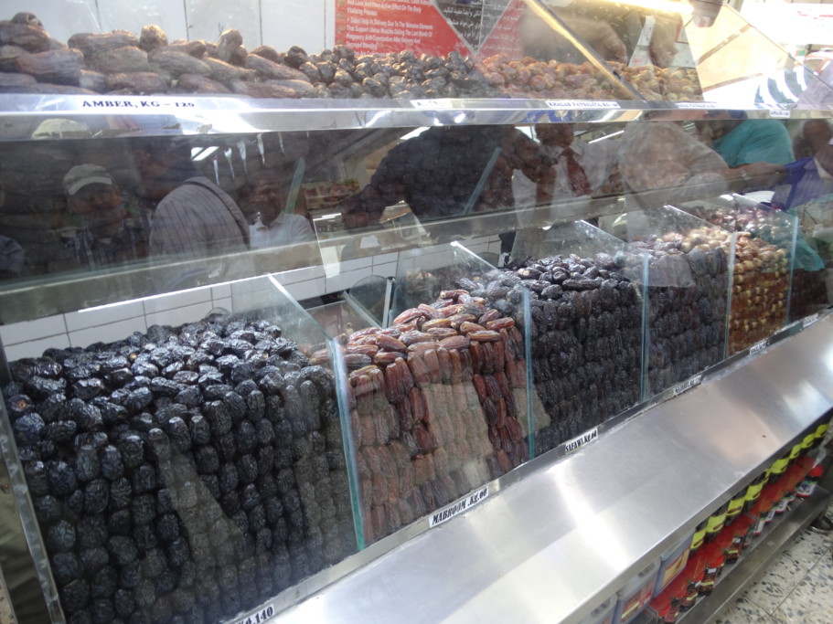 Być w Emiratach a zwłaszcza w Abu Dhabi a nie spróbować miejscowych słodkości takich jak daktyle to byłaby niepowetowana strata. Odwiedziliśmy więc sławny rynek daktyli, na którym odbywa się handel głównie owocami miejscowymi oraz sprowadzanymi z Iranu, Jordanii. Nasz przewodnik zaprowadził nas do jednego z licznych sklepów specjalizujących się w ich sprzedaży. Gdy weszliśmy do środka, to zaskoczyła nas ilość oraz różnorodność gatunków i smaków. Były w różnej postaci, w czekoladzie białej i tradycyjnej, kandyzowane, świeże i suszone. Znajdujący się w sklepie sprzedawcy-naganiacze częstowali nas, zachęcając w ten sposób do zakupów. Naprawdę trudno było się zdecydować. Kupiliśmy kilka gatunków.