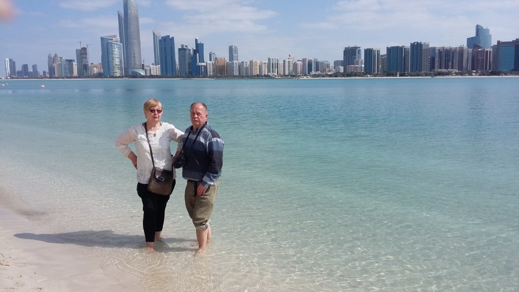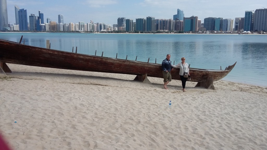 Słuchając opowieści naszych przewodników powoli dojechaliśmy do Abu Dhabi (Ojczyzna Gazeli). Jest to stolica a równocześnie nazwa największego emiratu wchodzącego w skład ZEA. Miasto zajmuje 86 % powierzchni emiratu i zbudowane jest na wyspie Abu Dhabi i kilku mniejszych wysepkach Zatoki Perskiej oraz zajmuje kawałek stałego lądu, z którym łączą go trzy mosty.