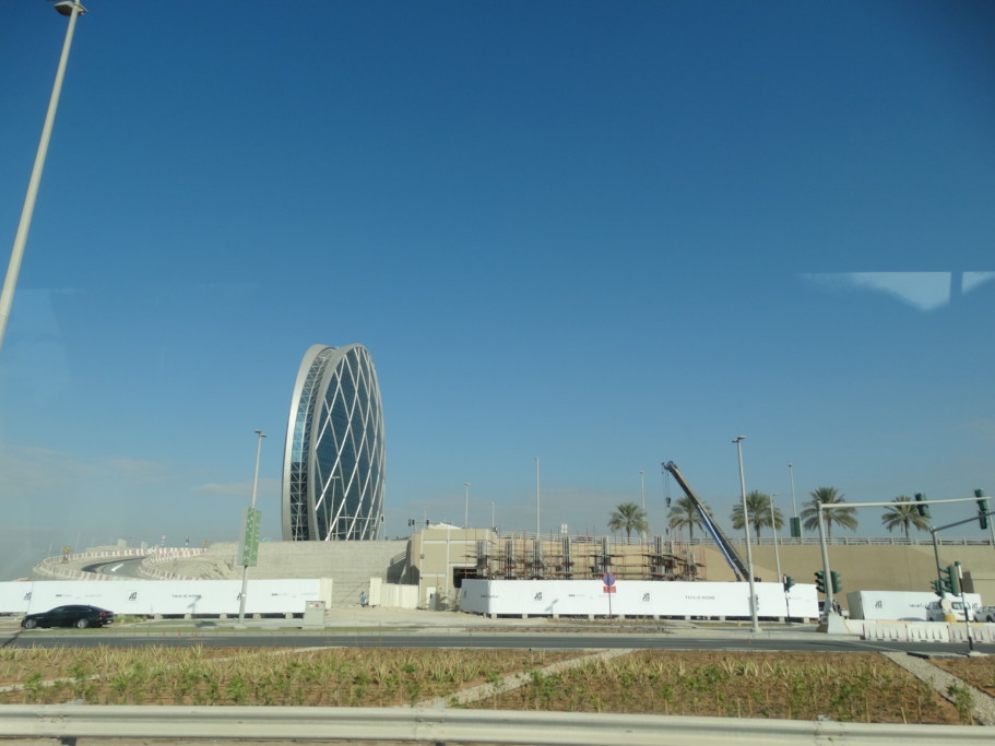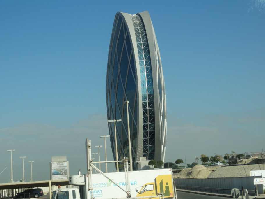 Monotonny krajobraz przerwał na moment budynek Aldar HQ – w który znajduje się główna siedziba największego developera ZEA. Ten 110-metrowy obiekt ma niezwykły okrągły kształt symbolizującym jedność, racjonalność i stabilność. Otoczony ukośną stalową kratą i zbudowany z przetworzonego wtórnie szkła, stali i betonu zdobył międzynarodowe uznanie i tytuł najbardziej futurystycznego budynku roku 2008.