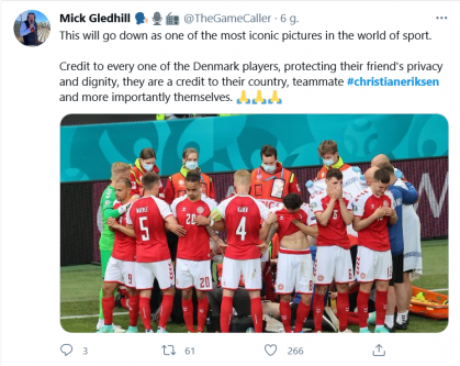 twitter zareagował błyskawicznie, wyrazy wsparcia i poparcia dla wspierających kolegę i jego rodzinę piłkarzy z zespołu Danii.