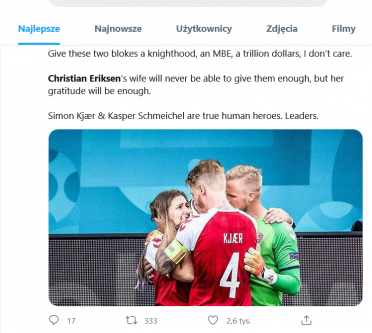 Zachowanie całego Teamu Duńczyków i Kibiców obu drużyn zasługuje na wyróżnienie i postawienie za wzór – przykład empatii i szacunku dla życia ludzkiego.