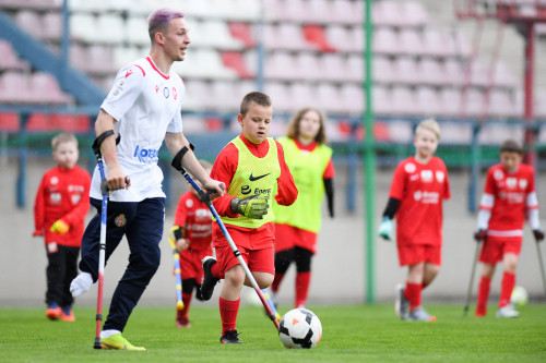Przemysław Świercz, kapitan reprezentacji Polski iwspaniali młodzi zawodnicy Junior Amp Futbol Polska na stadionie Wisły Kraków. foto: Michał Stańczak