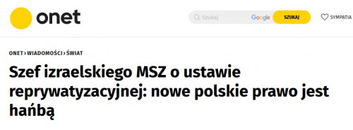 Sekundował mu Onet, opatrując tekst o rzekomo antysemickiej nowelizacji Kodeksu postępowania administracyjnego ciut bałamutnym tytułem: