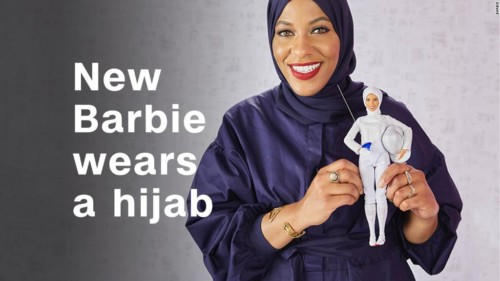 W serii lalek firmy Mattel, „sheroes„, pojawiła się nowa lalka Barbie. Jest w pełnym hidżabie wzorowanym na amerykańsko-muzułmańskiej szablistce olimpijskiej Ibtihaj Muhammad, pierwszej Amerykance, która brała udział w zawodach olimpijskich z głową zakrytą hidżabem, co – najwyraźniej – jest zdaniem firmy Mattel czymś, co powinny naśladować małe dziewczynki na całym świecie. I, oczywiście, co otwiera możliwość sprzedania milionów tych lalek na rosnącym rynku muzułmańskim.