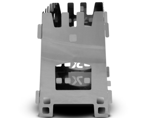 Kuchenka składa się z pięciu niezależnych elementów, które składamy w całość. Złożenie nie zajmuje więcej niż 30 sekund. Do kuchenki dołączone są trzy niezależne blaszki, dwie z nich to ruszt na mniejsze kubki, jedna to podstawka na paliwo stałe, czy też żelowe. Kuchenka w całości wykonana jest ze stali.