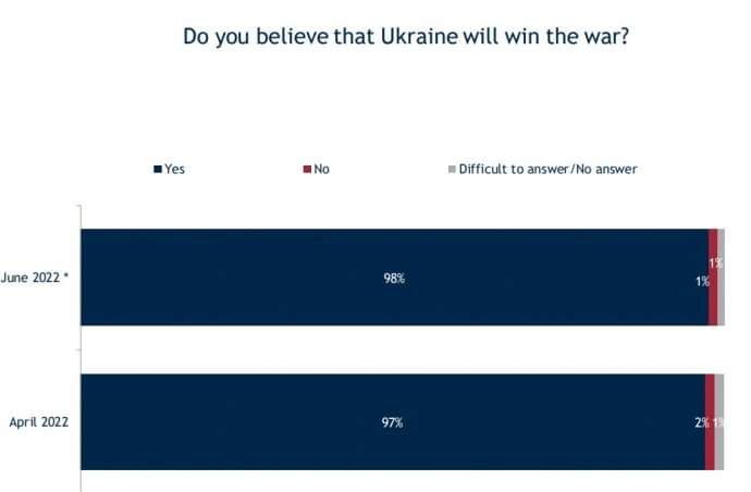 – 98% Ukraińców wierzy, że Ukraina wygra tą wojnę, a Rosja ją przegra. O 1% więcej niż w kwietniu