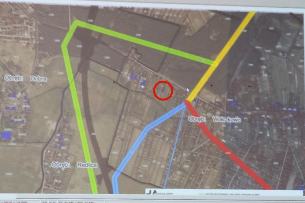 Projekt trasy tej linii w takim kształcie został przedłożony na sesji Rady Gminy Dobra w m-cu grudniu 2016r. Jednakże obradowanie radnych na tym projektem zostało wówczas wstrzymane przez Przewodniczącego Rady a projekt zwrócony przybyłym na sesję przedstawicielom wykonawcy chińskiej spółki PINGGAO Group do poprawki, przy czym zdarzenie to nie zostało w ogóle odnotowane w dokumentacji sesji, co nie najlepiej świadczy o transparentności pracy Rady Gminy pod jej obecnym przewodnictwem.