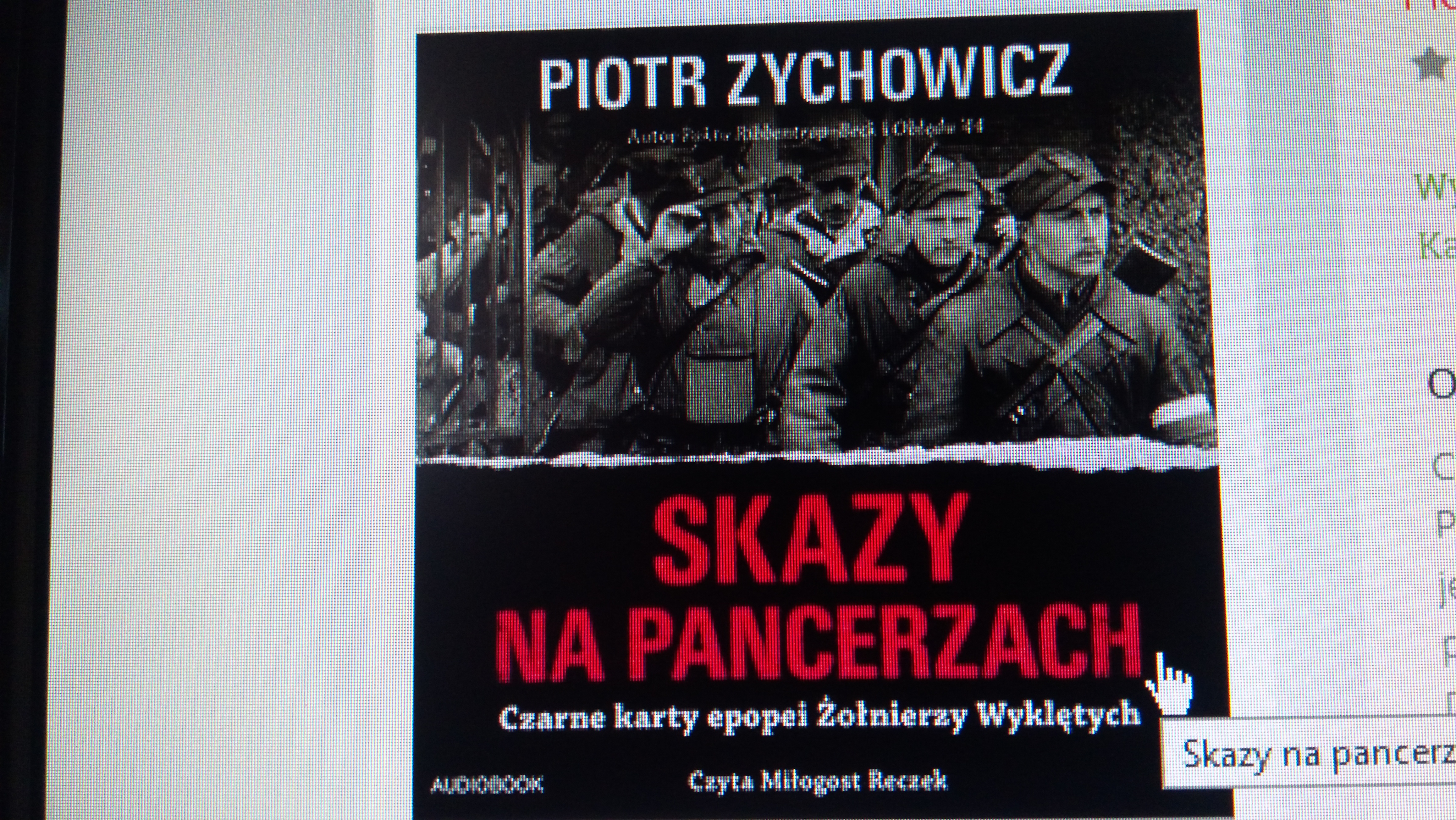 Nigdy nie ceniłam i nie cenę twórczości Piotra Zychowicza, ponieważ mam do niej zbyt wiele zastrzeżeń, ponadto uważam, że jego twórczość szkodzi Polsce, dlatego z uwagą przysłuchiwałam się rozmowie męża z jego kolegą z lat szkolnych, który jest nią zachwycony. Duże wrażenie zrobiła na nim książka „Skazy na pancerzach – Czarne karty epopei Żołnierzy Wyklętych”, w której opisuje on jak niektórzy Żołnierze Wyklęci dopuszczali się różnych niegodziwości. Uważa on, że ta pozycja powinna być obowiązkową lekturą w szkole, z czym kompletnie się nie zgadzam.