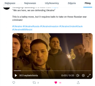 Prezydent Ukrainy, wolnej Ukrainy Wołodymyr Zełenski foto https://twitter.com/i/status/1497259234680922112