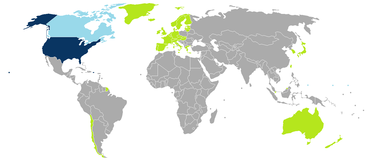 Obywatele krajów na szaro potrzebują wizę, aby dostać się do Stanów Zjednoczonych. Litwini, Łotysze, Estończycy, Czesi, Słowacy oraz Węgrzy ich nie potrzebują a podobno Polska ma bardzo silne przyjacielskie więzi z USA…