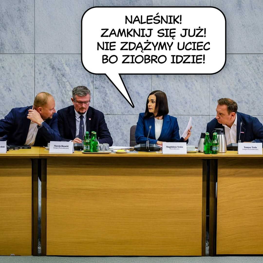 I wcale mnie nie zdziwi, że teraz Ziobro mając świadomość znaczenia takiej sugestii posłanki Sroki, ucieknie za granicę. Być może właśnie Sroka to specjalnie powiedziała, bo przesłuchiwanie Zbiory – jej i Koalicji Obywatelskiej – nie odpowiada. Bo przecież w tej komisji są same intelektualne nieloty i rozdeptane naleśniki.