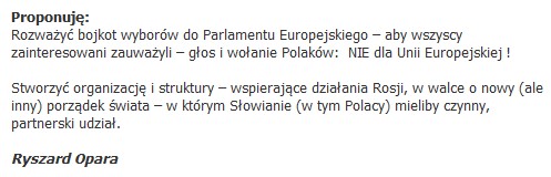 Na szczęście pers jest tak jawnie prorosyjski, tak jawnie nastawiony antypolsko, że, poza nielicznymi równymi mu w zaprzaństwie, nie jest w stanie wpływać na nastroje społeczne. Jednak jako zapalnik osób trąconych psychicznie nadaje się znakomicie.
