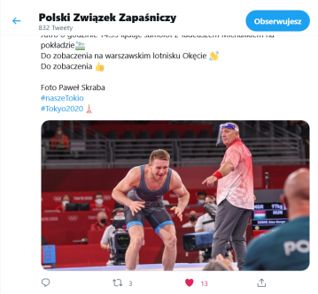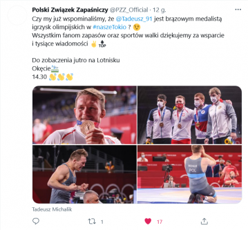 Zawsze skromny, pracowity i pełen pokory – jednym słowem BOHATER z Tokio ! foto:screen twitter Tadeusz Michalik oraz Polski Związek Zapaśniczy