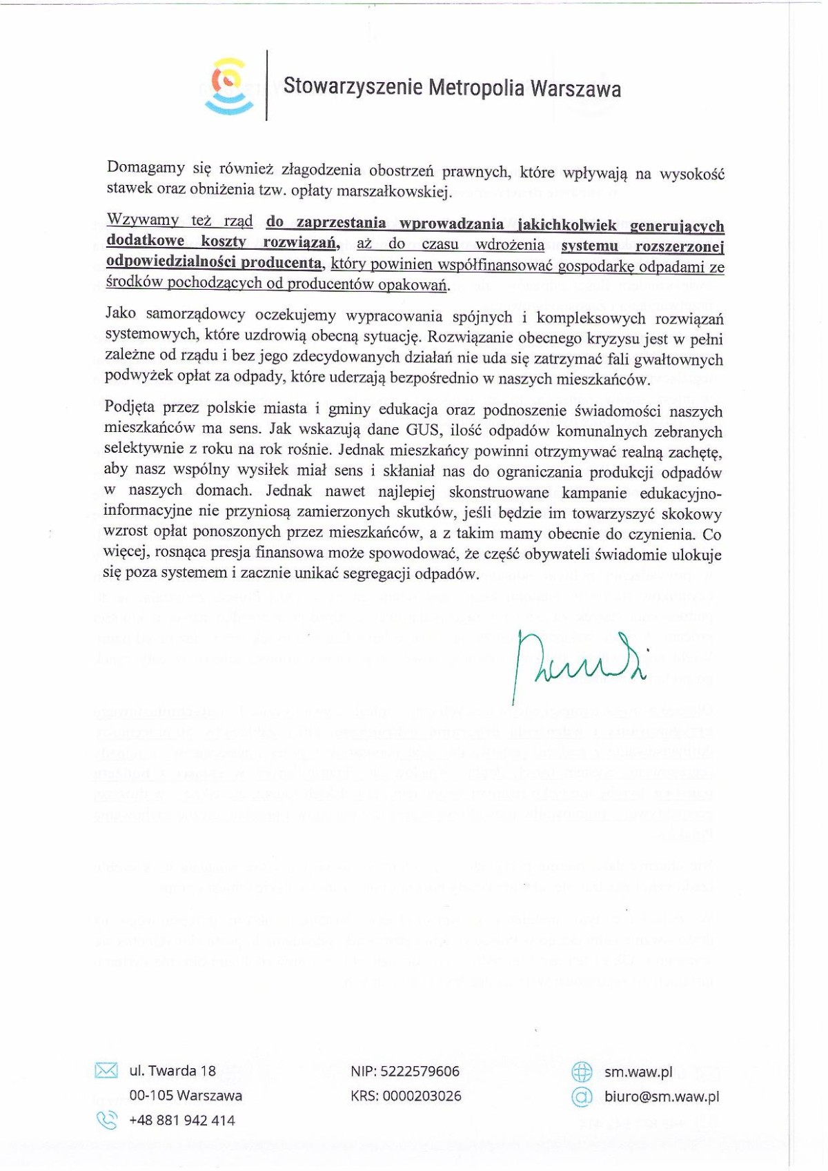 Stanowisko Stowarzyszenia „Metropolia Warszawa” w sprawie drastycznego wzrostu opłat za odpady komunalne