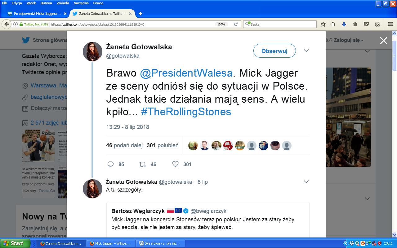 Bo chociaż Mick Jagger jasno i wyraźnie odciął się od udziału w polskiej oPOzycyjnej szopce: