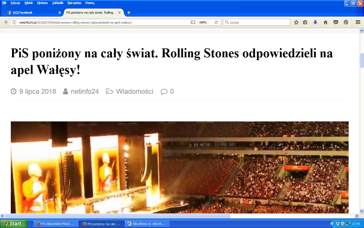 Mało znany portal NETINFO24.pl wraz z lewackim PIKIO.PL wypowiedź Jaggera komentują jako…. poniżenie PiS na całym świecie!