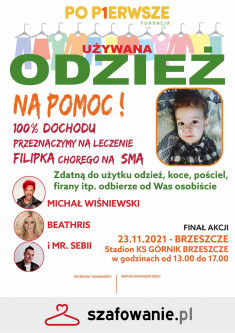 APELUJEMY do wszystkich którym los Filipka nie jest obojętny: prosimy przejrzyjcie swoje szafy i przynieśli wszystkie te rzeczy, które są Wam niepotrzebne na finał Szafowania 23.11.21 r. od godziny 13- 17. W tym dniu będzie z nami Mr. Sebi oraz Michał Wiśniewski. Nad ciekawą formą wydarzenia będzie dbał Łukasz Adamski.