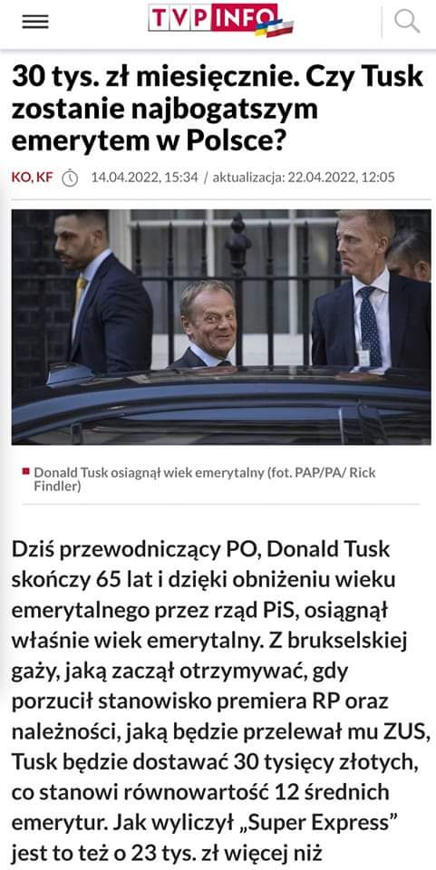 Jaki jazgot w TVP, że Tusk będzie miał wielką emeryturę!