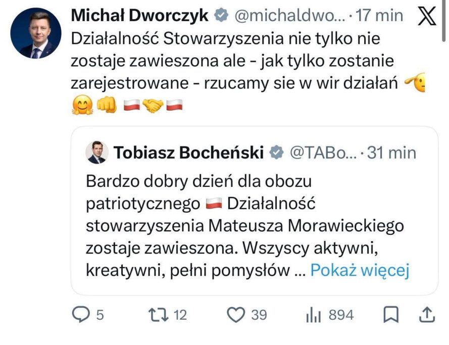 Taki obrót sprawy jest de facto sukcesem Mateusza Morawieckiego, jego gra va banque przyniosła efekt w postaci oficjalnego uznania i pobłogosławienia kierowanej przez niego frakcji. Na wspólnej konferencji prasowej Kaczyński i Morawiecki mówili o „dwóch płucach” PiSu. Niemniej, jeszcze nie opadł kurz po nocnym spotkaniu i oświadczeniu obydwu polityków a już „drugie płuco”… rzuciło się z pierwszym… sobie do gardeł.