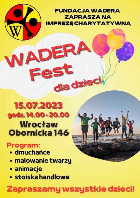 Ale to nie wszystko! WADERA Fest jest imprezą dobroczynną. Podczas imprezy będziemy zbierać fundusze na seniorów, odnajdywanie zaginionych osób i odzyskiwanie dzieci, które zostały odebrane ich rodzicom za granicami Polski. Uczestnictwo w Festynie przyczyni się do niesienia pomocy tym, którzy jej najbardziej potrzebują.