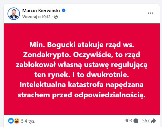 Z wyłącznej winy Tuska Zondacrypto dostało kolejny rok czasu na działanie.