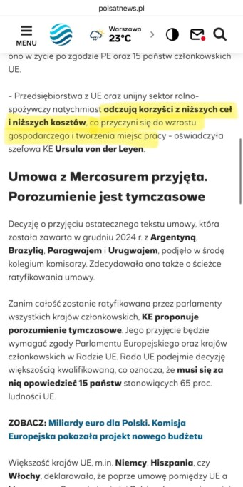 Mamy kolejne mijanie się z prawdą władz UE. Umowa z Mercosurem, nie jest podpisana na określony czas, więc nie jest „tymczasowa”, bo nie określono że obowiązuje np do roku 2028, czy 2035, tylko jest BEZTERMINOWA.