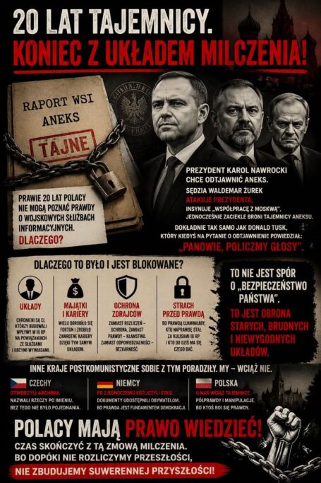 Jeżeli przez dwadzieścia lat kolejne ekipy – niezależnie od barw – nie potrafią albo nie chcą ujawnić prawdy, to nie jest to już kwestia „bezpieczeństwa państwa”. To jest pytanie o to, kogo i co się tak naprawdę chroni.