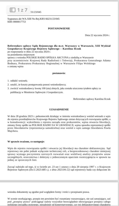 Sąd rejestrowy w przypadku Polskiego Radia: