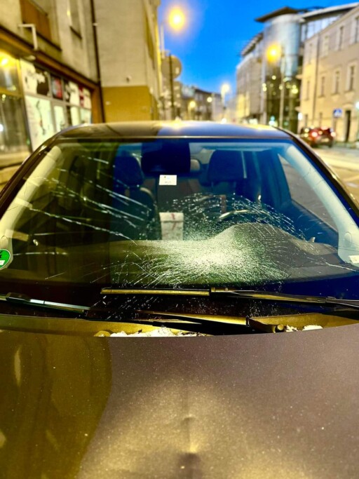 2- O 21:11 i 54 sekundy ktoś dewastuje mi auto. Rozbita przednia szyba, maska, dach, drzwi.