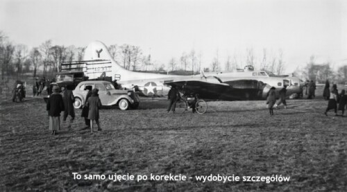 A skąd w ogóle wiadomo, jak wyglądała „Candie” po lądowaniu? Skąd te zdjęcia, które dziś pozwalają ustalić zarówno maszynę, jak i jej załogę? Otóż nie z żadnego wojskowego archiwum, tylko z odwagi ludzi, którzy w tamtym czasie mieli więcej determinacji niż rozsądku. Irena Marcinkowska, późniejsza Halicka, związana ze Zgrupowaniem „Żelbet” AK, zrobiła dokumentację niemal na oczach Niemców — tak po prostu, jakby fotografowanie rozbitego amerykańskiego bombowca w okupowanym mieście było czymś zwyczajnym. Niezależnie swoje ujęcia wykonał Krzysztof Trzebicki, który — jak głosi wieść — robił zdjęcia przez okular lornetki, żeby nie zwracać na siebie uwagi.