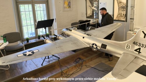 „Z historią tego samolotu zetknąłem się jeszcze podczas pracy dyplomowej na Politechnice Krakowskiej. Wtedy po raz pierwszy zgłębiałem temat i zbudowałem niewielki model B‑17G w skali 1:72, jako ilustrację do dyplomu. Przy okazji tamtego researchu trafiłem na wiele materiałów dotyczących lotu ‘Candie’, przede wszystkim dzięki opracowaniom prof. Krzysztofa Wielgusa i zespołu Szymona Serwatki z AMIAP — Aircraft Missing in Action Project. Model, który zrobiłem na studiach, okazał się na tyle udany, że zaproponowano mi wykonanie dużej rekonstrukcji. Nad tą wersją pracowałem kilkanaście miesięcy, po godzinach, w domowym warsztacie. Każdy panel poszycia, każda gondola silnika, każdy karabin maszynowy powstawał osobno na drukarce 3D. Starałem się odwzorować wszystkie detale jak najdokładniej. Jeśli zajrzy się do kokpitu, widać pełne wyposażenie kabiny pilotów. W silnikach również odtworzyłem praktycznie każdy element. Jestem z tego modelu naprawdę zadowolony.”    (A. Sordyl)