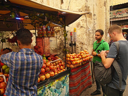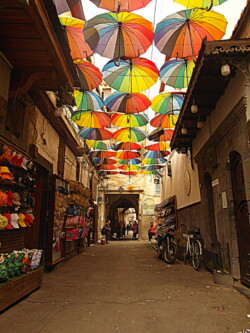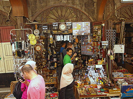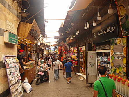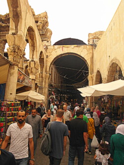 Wchodzimy w obszar starego miasta wpisanego na Listę UNESCO w 1979 r. .Większość przestrzeni wypełnia tu zapach – Bazar – Suk al-Hamidijja. Zapachy zmieniają się co przecznica, zależy czym handlują. Oczywiście najlepsze te orientalne; przyprawy, albo słodycze. Gdzie indziej smażone potrawy, a to znowu wyroby skórzane, albo sterty mosiężnych garnków. Z licznych kawiarni zapach kawy, a z innych knajpek zapachy tabaki z fajek wodnych.