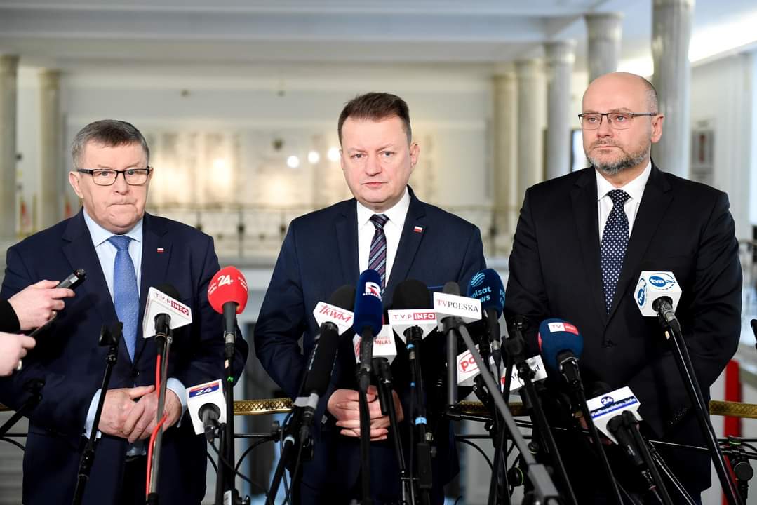 – „W naszym kraju #Koalicja13grudnia dokonuje destrukcji państwa prawa. To jest przesłona, za którą odbywają się bardzo groźne dla przyszłości Polski procesy, na które Donald Tusk i #Koalicja13grudnia wyraża zgodę. Przede wszystkim chodzi o 3 nowe podatki, z których wpływy będą skierowane do budżetu UE kosztem państw członkowskich, kosztem Polski. Te podatki to podatek od handlu emisjami dotyczącymi CO2, to podatek od śladu węglowego i trzeci podatek dotyczy zysków korporacji. Te wpływy powinny trafiać do budżetów państw narodowych. Zmieni się w ogóle podejście do podatków. Otóż, wcześniej składki były naliczane pod względem dochodu narodowego brutto, teraz będą to podatki, które będą ściągane bezpośrednio od tych procesów, co spowoduje, że Polska będzie bardziej obciążona niż zamożne państwa Zachodu Europy. Zgodę na to podejmuje rząd Donalda Tuska w ciszy. Panuje cisza medialna w tej sprawie. My składamy wniosek o debatę na najbliższym posiedzeniu Sejmu. Chcemy zadać dwa podstawowe pytania. Po pierwsze, dlaczego wycofane zostało weto wobec tych podatków, które było składane przez rząd PiS i po drugie, jakie będą koszty tych podatków dla zwykłego obywatela, dla budżetu państwa. Można pokusić się o teorię, że Donald Tusk spłaca dług, zobowiązanie, jakie podjął poprzez wsparcie ze strony UE w czasie kampanii wyborczej. Problem polega na tym, że ten dług spłaca zwykły obywatel Polski” – Przewodniczący KP PiS Mariusz Błaszczak.