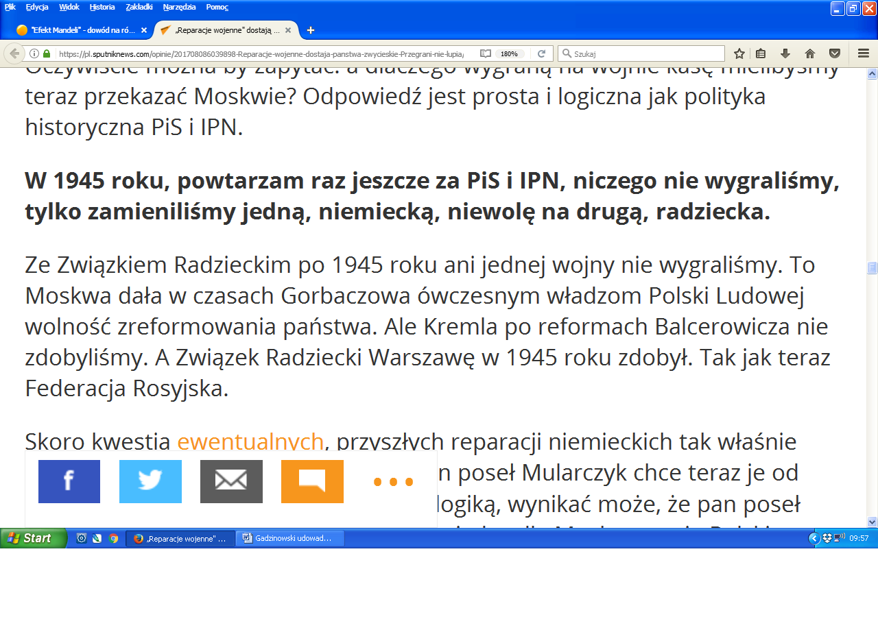 Niejaki Gadzinowski, ongiś poseł LSD, na łamach polskojęzycznego Sputnika przedstawia alternatywną historię, która dla niego jest jak najbardziej realna.