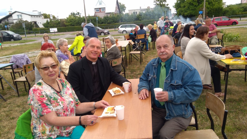 Kupiłam z mężem kilka, były przepyszne. Gdy tak siedzieliśmy przy ciastkach i kawie na horyzoncie pojawił się proboszcz ks.Józef Miciński. Jak zwykle znalazł czas, by z każdym się przywitać i zamienić kilka słów. Przysiadł się również do naszego stolika, by chwilę porozmawiać.