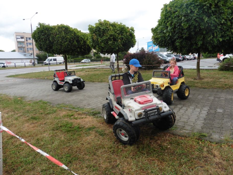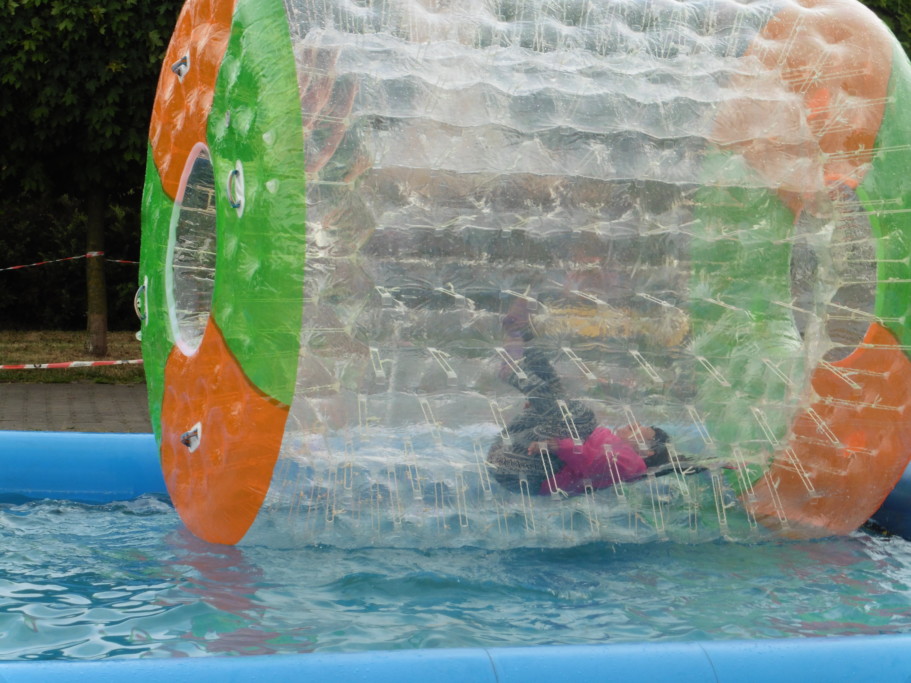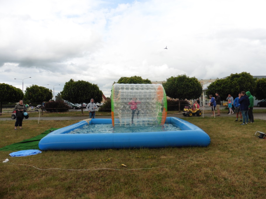 Nieopodal sceny znajdowały się samochodziki którymi jeździły maluchy, lecz największym powodzeniem cieszył się umieszczony w basenie olbrzymi, przezroczysty napompowany walec do środka którego wchodziły dzieci. Po zabawie z rodzicami szły na watę cukrową.