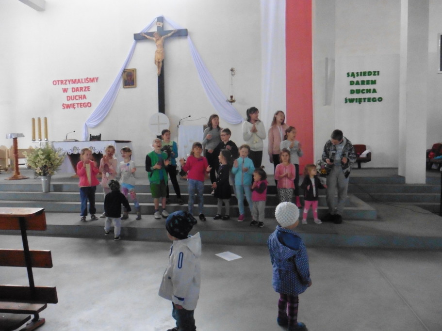 Po zapowiedzi, że w kościele wystąpi parafialny dziecięcy zespół „Armia Pana”, udaliśmy się do środka, bo dużo o nim słyszeliśmy, ale nie widzieliśmy ich na żywo. Składa się on z dzieci w wieku od kilku do kilkunastu lat.