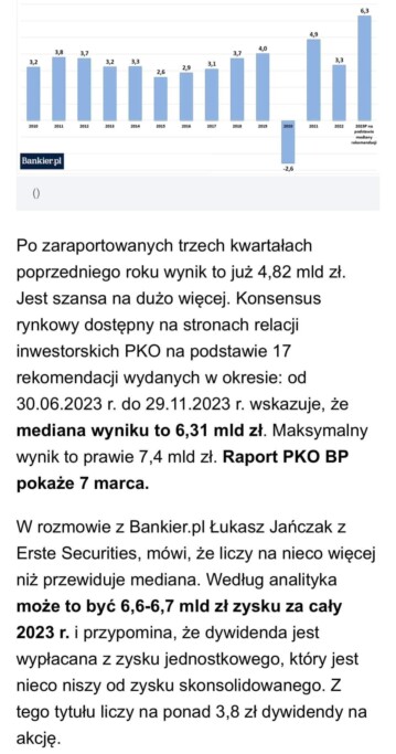 We wtorkowym (30.01.24 r.) poście pozdrowiłem wszystkich, zmierzając do pracy. Dodałem jednocześnie na podstawie wielu artykułów, które znajdują się w sieci, wypowiedzi ekspertów i relacji inwestorskich publikowanych w prasie ekonomicznej, informację, że od kilku tygodni media rozpisują się o możliwych 7 mld zł zysku PKO BP (absolutny rekord ).