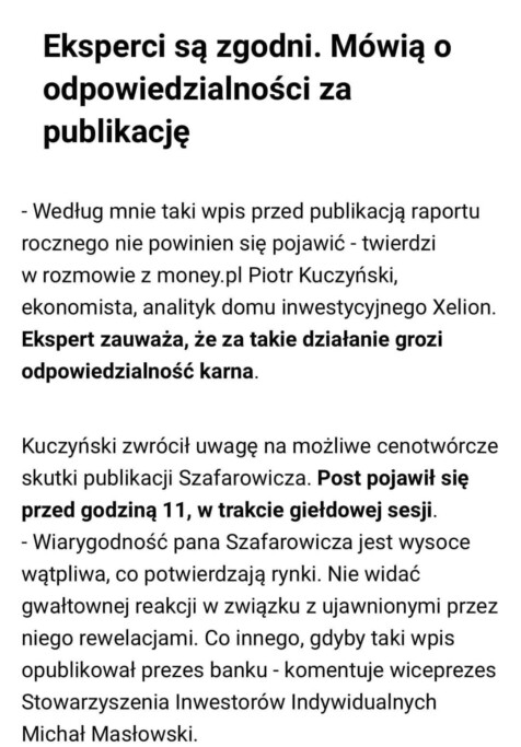 Jak zareagował portal Money.pl (element sorosowej grupy medialnej)? Zaczął pytać ekspertów czy przez przypadek nie ujawniłem danych wrażliwych i nie zachwiałem dzisiejszą warszawską giełdą?!