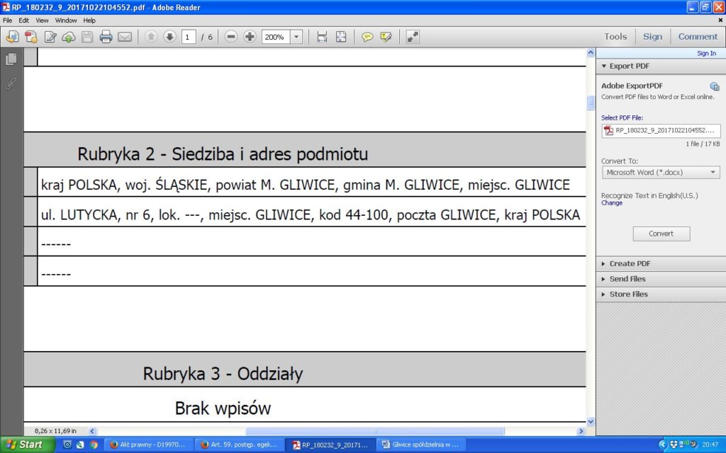 Wg stanu na 22 października 2017 r. z siedzibą w Gliwicach, ul. Lutycka 6.