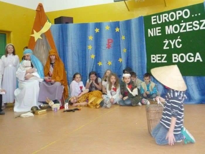 Szkoła Podstawowa im. Marii Konopnickiej w Ustroniu Morskim. Indoktrynacja religijna w publicznej szkole podstawowej stosowana wobec wszystkich dzieci, również tych z rodzin bezwyznaniowych.