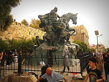 Pomnik Saladyna znajduje się na obrzeżu starego miasta, tu kończą się stragany całego wielkiego bazaru.