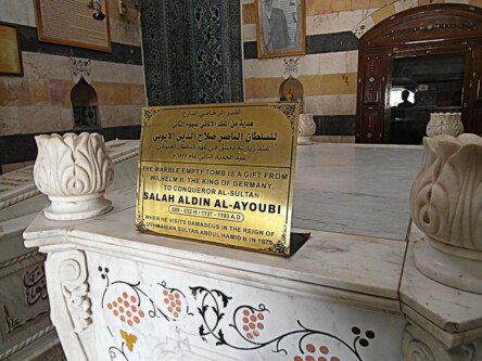 Po zwiedzeniu meczetu Umajjadów, dosłownie tuż obok znów wnikamy pomiędzy ściany, by odkryć nową przestrzeń. To mauzoleum Saladyna – sułtana założyciela dynastii Ajjubidów (ur. 1138 w Tikricie, zm. 4 marca 1193 w Damaszku).