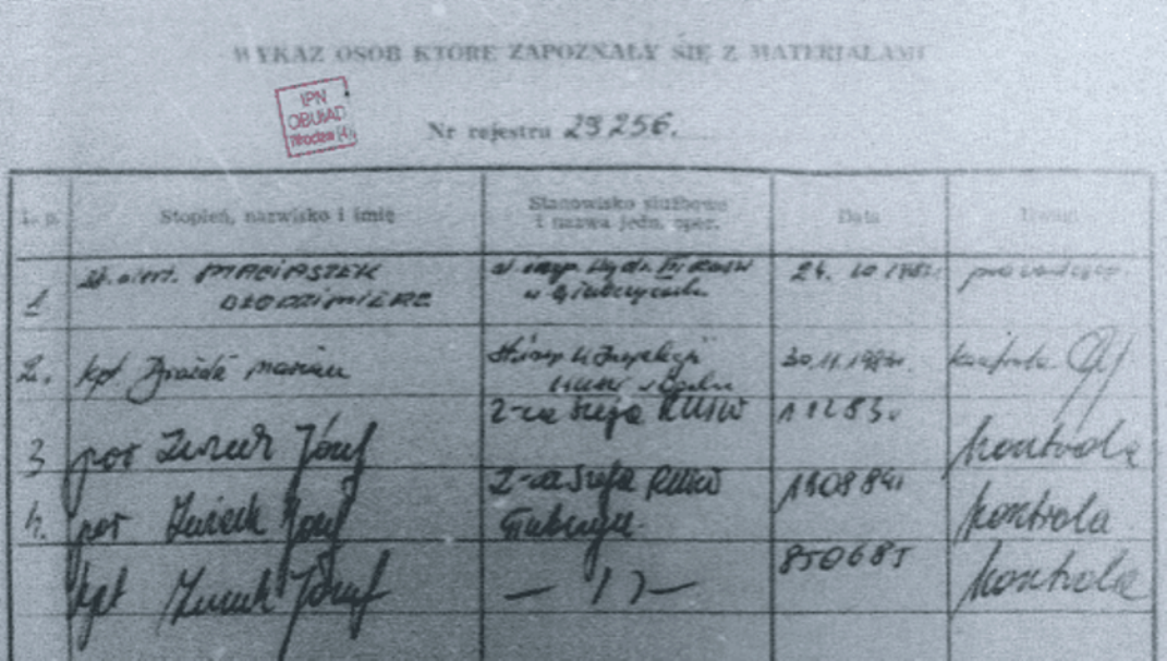 Po latach dotarłem do akt IPN, z których wynika — iż ów major Józef Zwiech… interesował się moją osobą, często przeglądał moje w esbecji dossier, a nawet popędzał mojego od nich anioła stróża-sierżanta do roboty, zwracając mu uwagę, że nie ma w moim kwestionariuszu nowych wpisów.