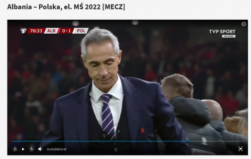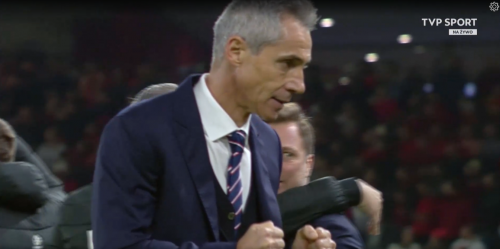 Albania – Polska – Paulo Sousa – reakcja na bramkę Świderskiego, mówi wszystko foto:TVP SPORT, screen z relacji na kanale tvpsport.pl (retransmisje)