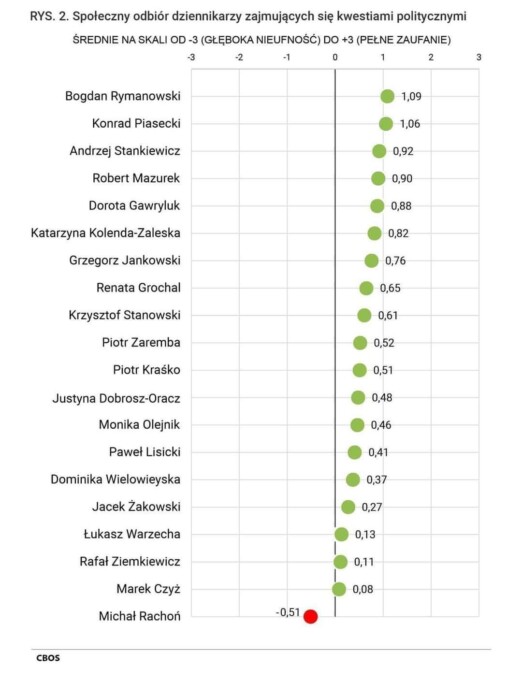 Poniżej czołówka czwartej władzy wedle badań CBOS, przeprowadzonych na reprezentatywnej próbie naszego wiecznie nieszczęśliwego narodu.