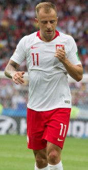 Kamil Grosicki – w eliminacjach do EURO w kadrze trenera Nawałki zdobył 4 gole wszystkie z Gibraltarem (w sumie 8 bramek -do 24 spotkania) u trenera Brzęczka w eliminacjach jedną bramkę z Izraelem (w sumie 5) foto:Екатерина Лаут, CC-BY-3.0